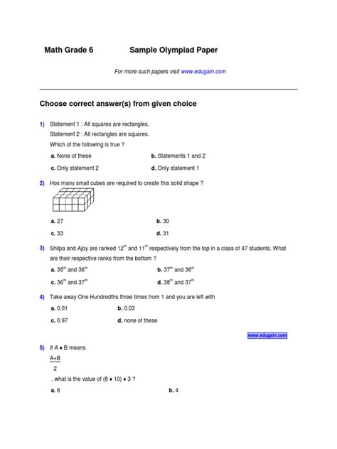Download MATHS OLYMPIAD GRADE 6 PAST PAPERS mobipocket